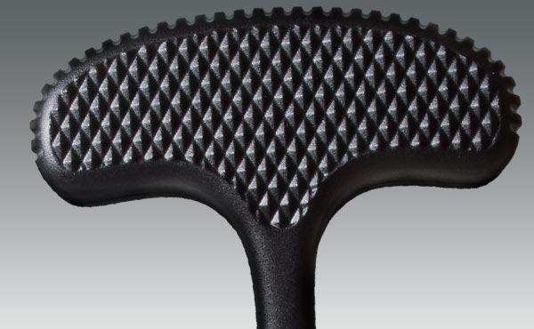 巧妙设计的Kray-Ex材质手柄提供了一个安全舒适的把握力,表面菱形防滑纹路可以更好的握持把握。随刀配备安全坚固的Secure-Ex刀鞘和黑色珠链。
