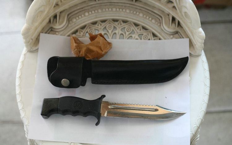 刀柄上带有指南针,抗振防水,十分实用。刀可以拆卸组装,刀柄柄后端有螺丝可以旋转拆下。