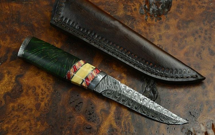 全长:242MM,刃:122MM,柄:120MM;作者:瑞典 顶级工匠 马蒂亚斯·斯特斐斯,刀身图案级纹路,厚:4MM,硬度:61-62 非常锋利 柄材:红色猛犸象牙臼齿化石+猛犸象牙+木瘤; 护手:大马士革钢 马蒂亚斯·斯特斐斯是北欧最专业的大马士革钢匠人之一,也是北欧最有名的大马士革刀坯煅造者,尤其是他煅造的马赛克大马士革,无论是花纹构造,表现形式还是性能,更是达到极高的水准,被欧美许多著名刀匠使用,其刀坯上刻有其名字的首写字母"MS".