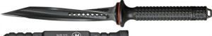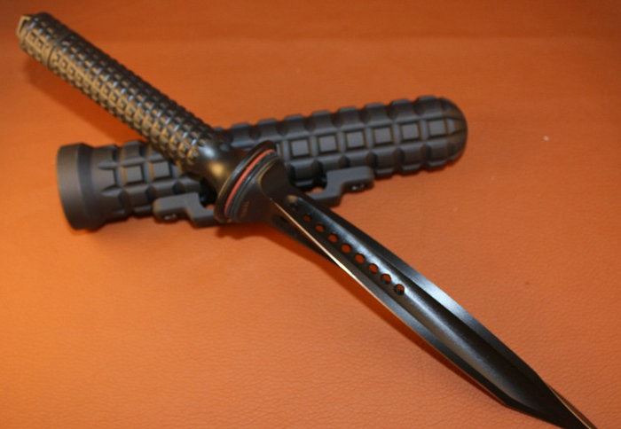 Jagdkommando是奥地利武装特种行动精英小组的名称。这款独特的微技术Jagdkommando是由一整块不锈钢铣削而成!这把直刀拥有三个的锋利刀刃,刀刃具有相同的扭曲弧度并集中到尖部形成锥状刀尖。刃部之间的槽口上开有减重降压孔,并让刀身整体完美地结合在一起。中空的手柄表面拥有华夫格(waffle)纹路,这让使用者即使配戴手套也能得到充足的紧握感。柄尾部拥有螺纹的端盖,旋开后可以将重要文件放入其中进行保存。刀身通体采用黑色涂层进行涂覆,增加刀具防锈性能也使其更具隐藏性。
