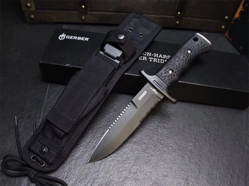 刀身以154CM钢材铸制,覆盖以特殊不反光黑色涂料,可减低野外战斗中不必要的反光,并且能防锈。本公司所引进的此款刀子附有原厂之黑色纸盒,以及Gerber的保证卡,相当具有质感,更增添收藏之价值。于1939年在美国俄勒冈州波特兰市创办了戈博传奇刀具公司。开业初,戈博公司专注于生产厨房刀具,很快便成为美国最优秀的刀具生产商之一。生产首屈一指的刀具是戈博公司的目标。在第二次世界大战期间,戈博产品成为美国军队的装备之一,受到士兵们的喜爱。时至今日,戈博刀具仍为美国及世界各地军警人员的普遍装备。1958年,戈博公司开始研制运动休闲用工具结果大受欢迎。之后,艾博公司开始在市场上陆续推出高品质的狩猎用工具,捕鱼用工具,以及便携式刀具。戈博这个名字成为最佳运动用刀具的同义词。同时,戈博亦以其铜摺刀及救生刀闻名于世。戈博对生产过程的每一回个细节均一丝不苟,人工镶嵌技术更是巧夺天工,水准堪称同业中的翘楚。 时至今日,戈博已将业务范围扩展至日益增长的户外休闲产品,Multi-Plier多用钳便携工具,运动锯,大小不同的斧头,实用运动套装及美国太空总处认可的折合铲等。所有戈博产品都提供与产品制造有关的终身担保。当您购买戈博刀具时,您不只买了一把坚实耐用的刀,而且拥有了一个传奇。