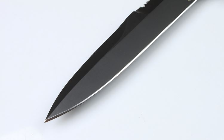 型 号: 39-09combat 全 长: 284mm 刀 长: 160mm 刃 材: N690 硬 度: 58HRC 表 面: 钛氮涂层 刃 厚: 6.3mm 柄 长: 124mm 柄 材: FORPRENE (北约军用规格) 涂 层: MIL-C-13924 黑色涂层 重 量: 305g 原产地: 意大利