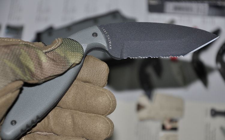 卡巴TDI执法刀是由战术防御研究所(Tactical Defense Institute,TDI)的创始人John Benner所设计。TDI执法刀是设计被用做“最终选择”刀具,当执法者在极端的近距离遭遇犯罪嫌疑人无法使用手枪时,TDI刀具便派上用场了。这种独特设计的刀具拥有手枪状的设计,可佩戴在使用者裤子皮带的左侧或右侧。这把1485FG(Foliage Green,植物绿)大型执法刀,由AUS 8A不锈钢锻造的刀身硬度和韧性达到良好的平衡,并具有锋利的刃部和耐腐蚀性能。刀身水平部分拥有的是齿刃,可以执行繁重的切割工作。刀尖部的几何刀头灵感来自于日本刀刃的形状,这种风格的刀具厚重结实并拥有强大的刺削能力。刀身拥有不反光黑色粉末涂层,并印有TDI标志。