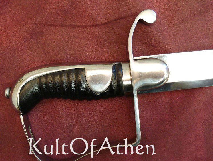 This saber was widely used by the British and their Prussian allies under General Blucher in the Battle of Waterloo. The blade was derived from the ferocious Indian Talwar and was reviled by the French who protested its use due to the horribly destructive wounds it inflicted. In fact, this saber was so successful as a cutting weapon, that the German Cavalry continued to use it right up to the beginning of the 20th century! Features a sharpened high carbon steel blade with steel hilt and a leather wrapped grip. Includes a matching steel scabbard.