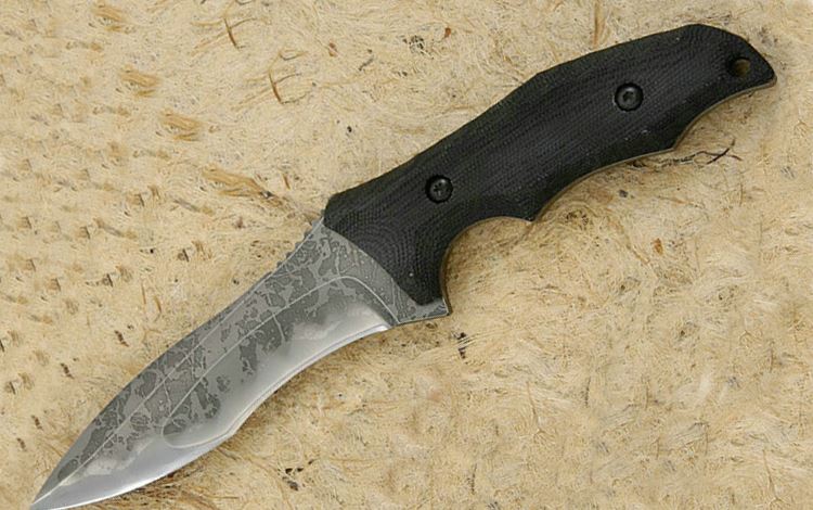 黑色米卡塔表面带有独特的内凹式和滚花槽口切割面,配合刀背的滚花刻槽为使用者提供了非常好的把握体验,增加了手掌对刀的掌控力。刀柄尾端带有穿绳孔,用户可自行选择悬挂心仪的饰物。