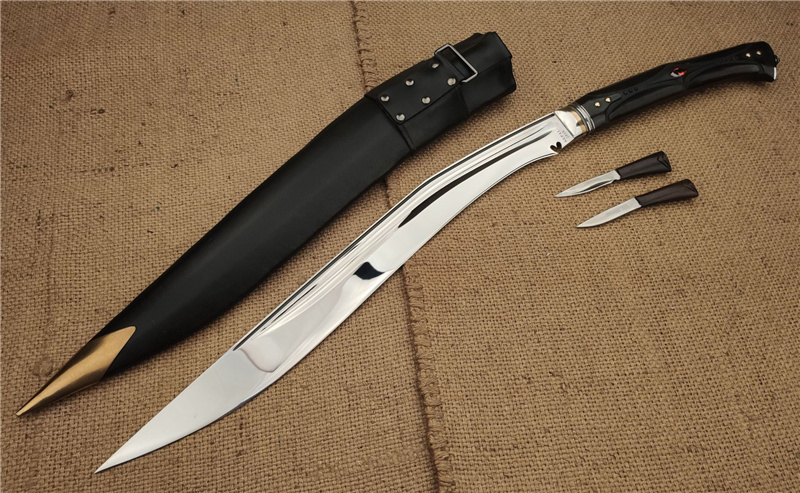 尼泊尔重型弯刀“武士”,全长75cm,廓尔喀弯刀中威力最大的一款双手刀。超级锋利,威猛无比。KHAI公司2018年出品,全球限量100把。