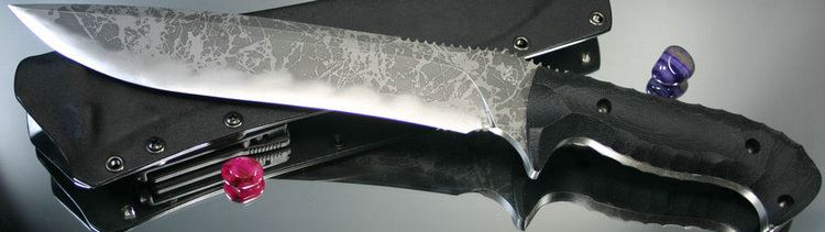 Machete type large 10 inch drop point OU-31 blade knife with slightly recurved Hamaguri-Ba edge and long false edge and notches on back. 5-1/2" hand contoured Black Canvas Micarta handle with lanyard hole on end. Comes with hand fitted Kydex sheath with Tek-Lok Belt device. 日本研磨达人松田菊男先生再次展现他高超的研磨技术。从刀刃上到刀背上的假刃口,都一再呈现他精湛技术。 全 长: 385mm 刀 长: 250mm 刃 材: OU-31 硬 度: 64HRC 刃 厚: 6.6mm 柄 长: 135mm 柄 材: 米卡塔 重 量: 640g 原产地: 日本 刀鞘: K鞘